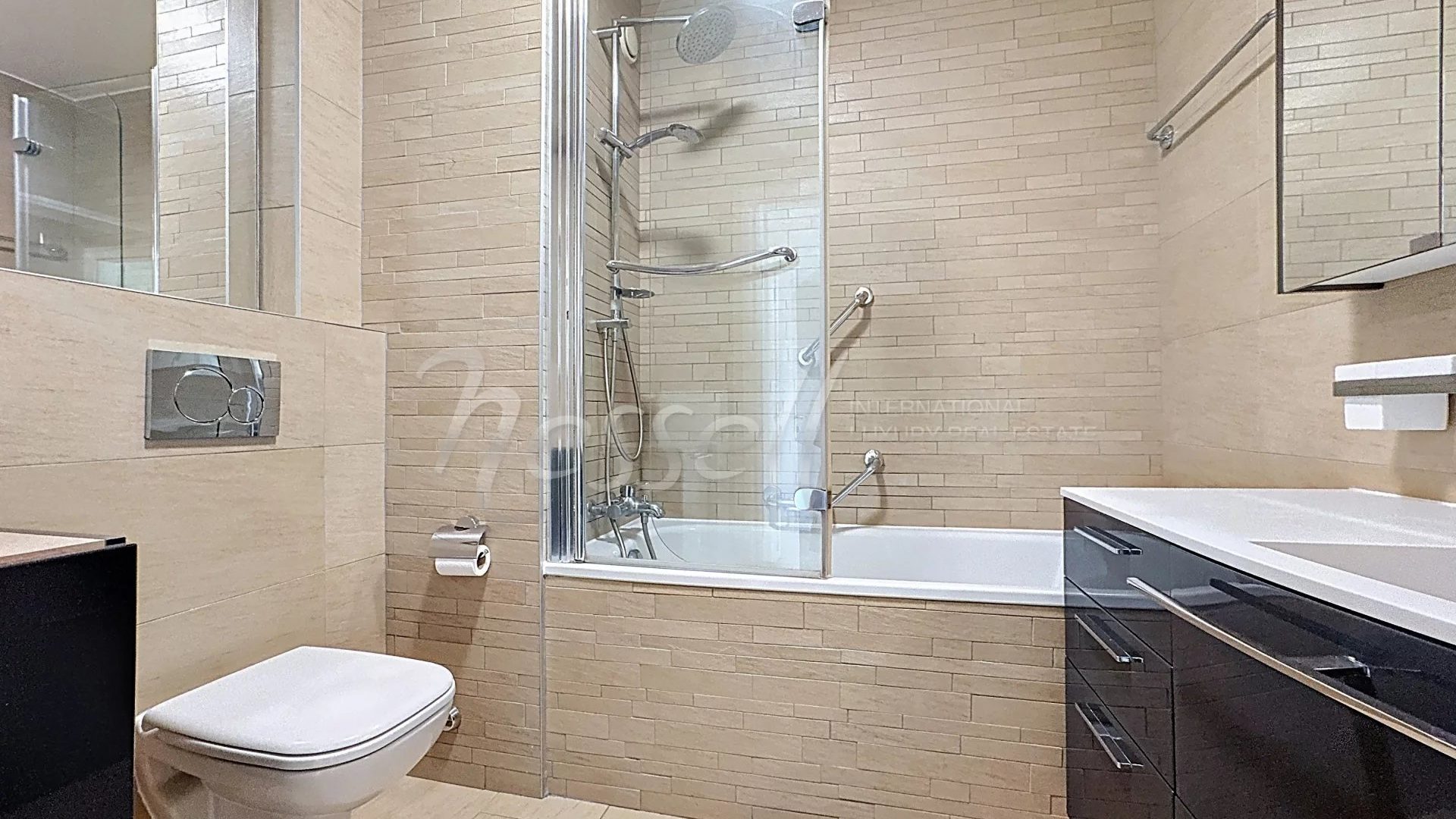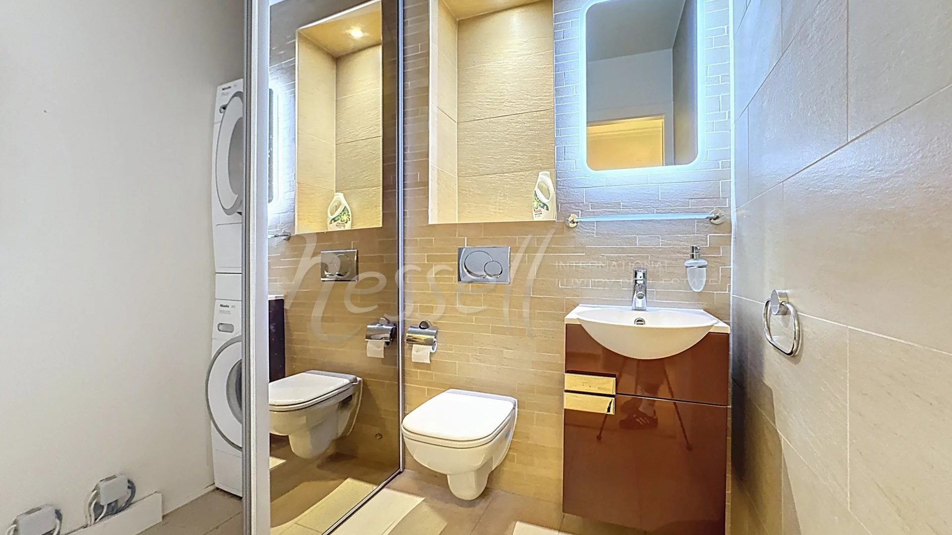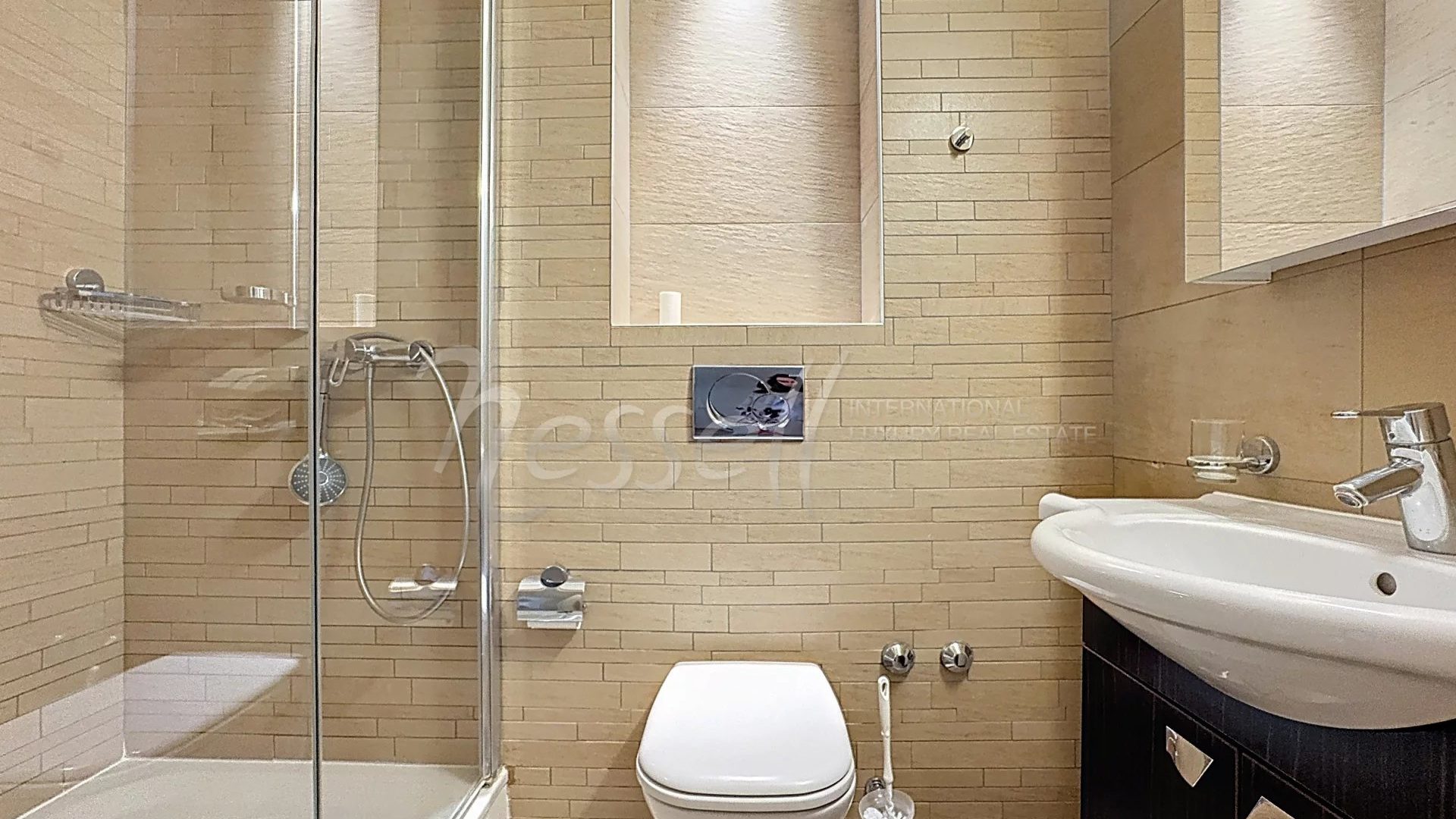 La partie jour comprend une élégante entrée avec WC visiteurs, un vaste double séjour donnant accès à deux charmants balcons orientés sur le jardin de la résidence, ainsi qu’une belle cuisine entièrement équipée.