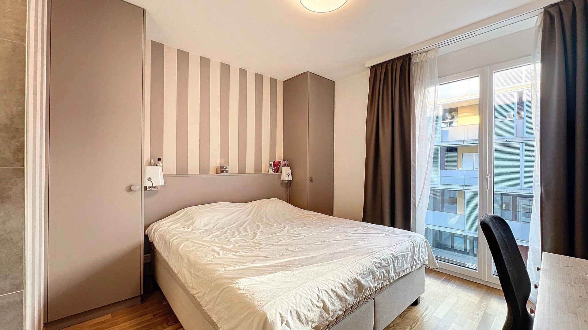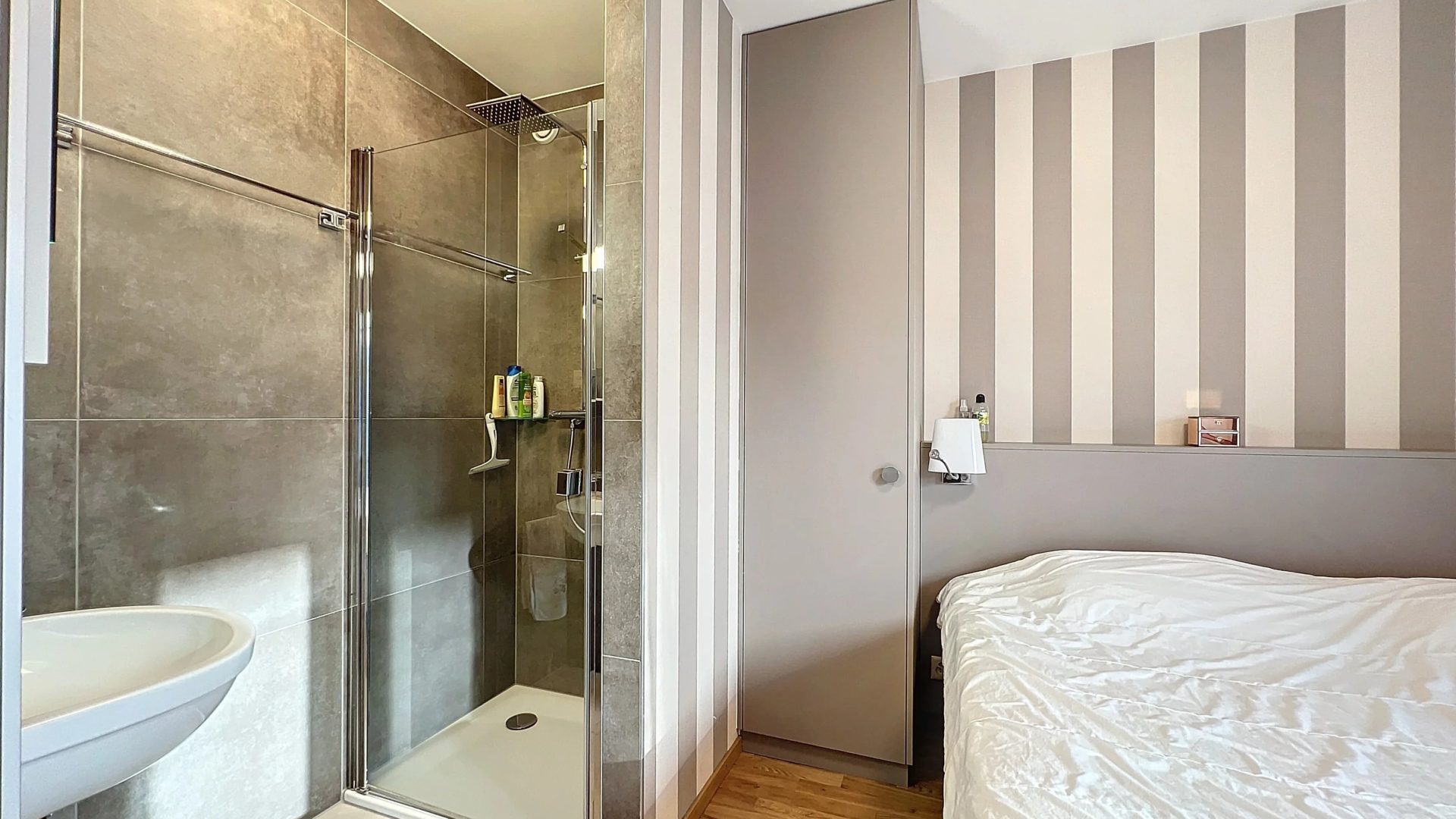 Il propose deux belles chambres, dont une suite avec salle de douche privative, ainsi qu’une seconde salle de douche complète. L’espace de vie, lumineux et harmonieusement agencé, comprend un agréable séjour avec accès au balcon et une cuisine semi-ouverte entièrement équipée.