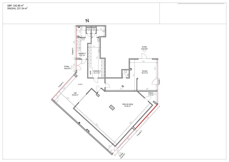 L’arcade dispose d’une grande salle équipée de miroirs du sol au plafond, de vestiaires séparés pour hommes et femmes avec douches et WC, une double entrée coté rue et partie commune de l’immeuble ainsi qu’un vaste hall d’entrée