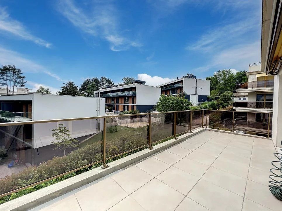 Moderne et contemporain, ce bien se situe dans un quartier résidentiel prisé, à proximité du plateau de Champel et des commerces. Il dispose de plusieurs terrasses spacieuses, ainsi que d’une terrasse supplémentaire de 183 m², de type solarium, aménagée avec une cuisine d’été, un espace de rangement, une douche et des WC indépendants.