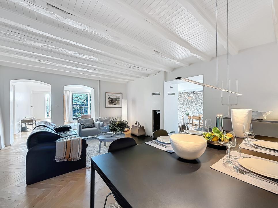 La maison comprend douze pièces dont sept chambres dont trois avec balcon, quatre salles de bain, un vaste séjour avec cheminée, une cuisine italienne neuve (2023), salle de sport, cave et buanderie.