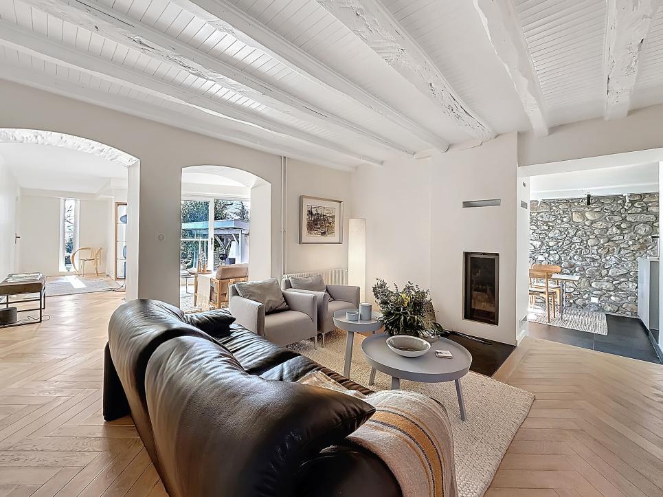 Au coeur du village de Challex, à 10 min de la gare de La Plaine (Genève en 19 min), découvrez cette superbe propriété en pierre du XVIIIe et XXe siècle, entièrement rénovée, offrant 300 m² habitables sur un terrain clos et paysagé de 1 225 m² avec piscine, dépendance et pool house.
