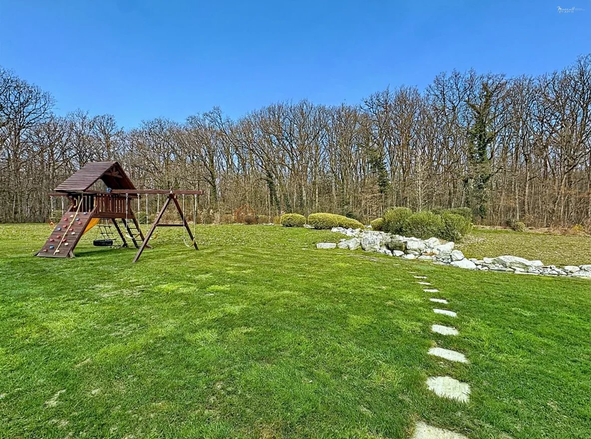 Une piscine y est parfaitement intégrée dans un cadre verdoyant et préservé.
