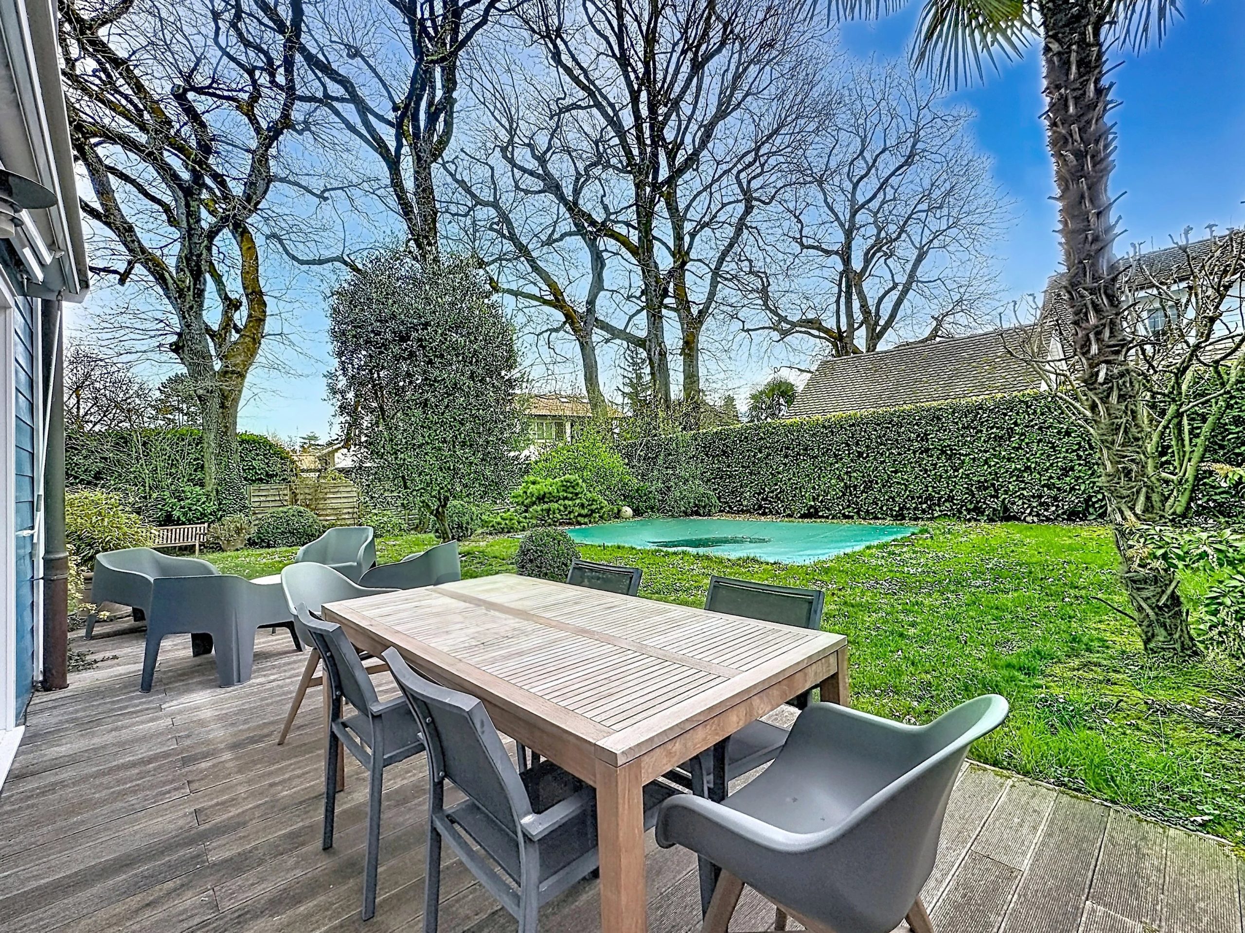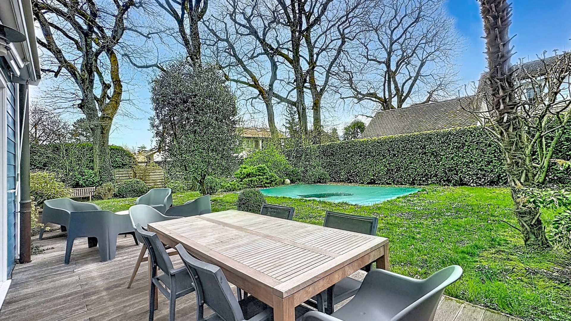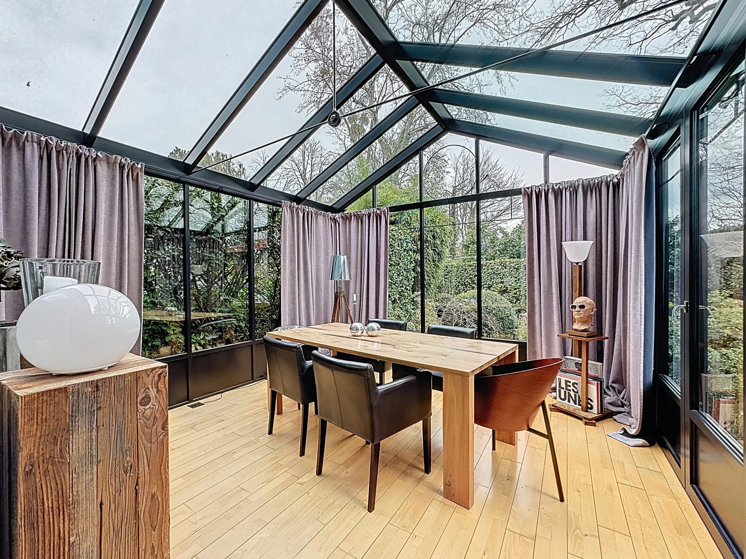 Le rez accueille une cuisine ouverte sur un séjour en enfilade, prolongé par une magnifique véranda baignée de lumière, véritable pièce de vie supplémentaire ouverte sur un splendide jardin avec piscine.