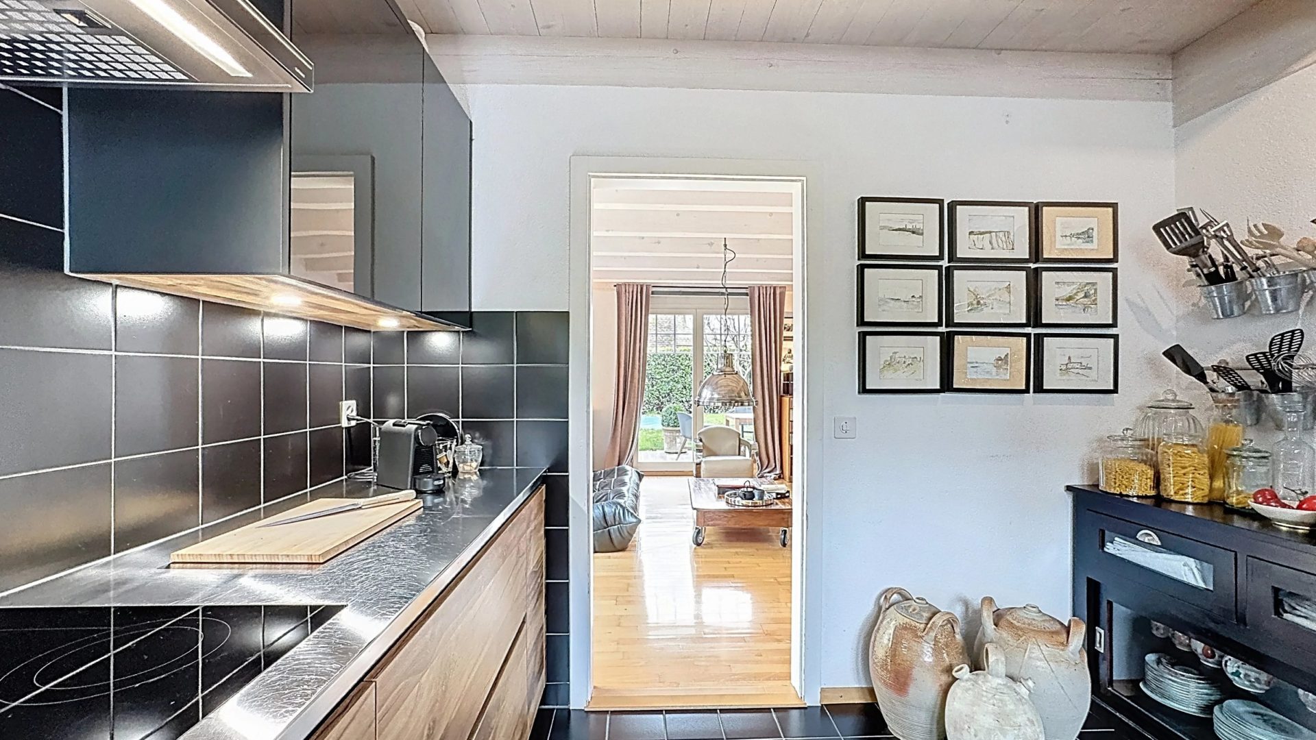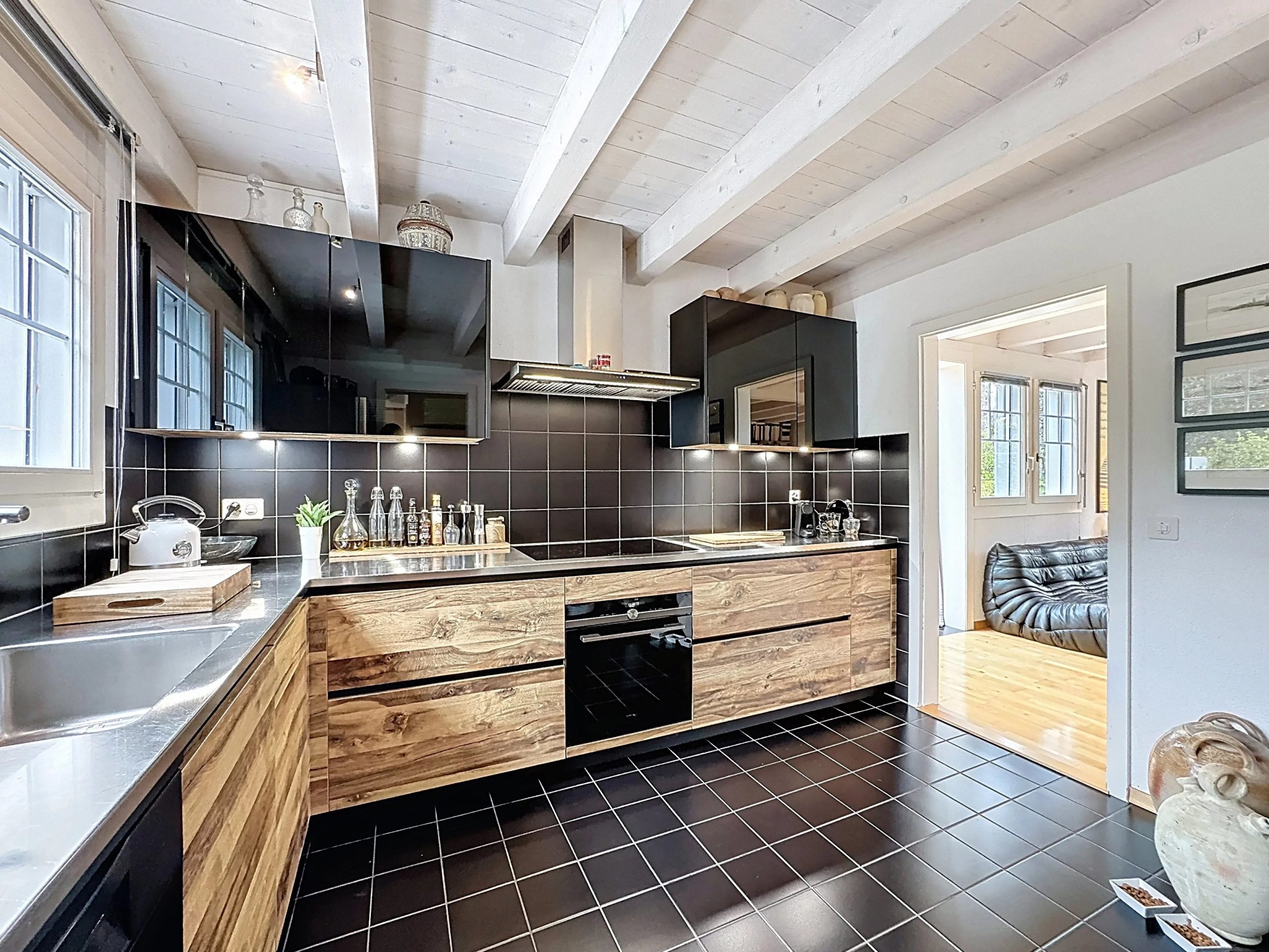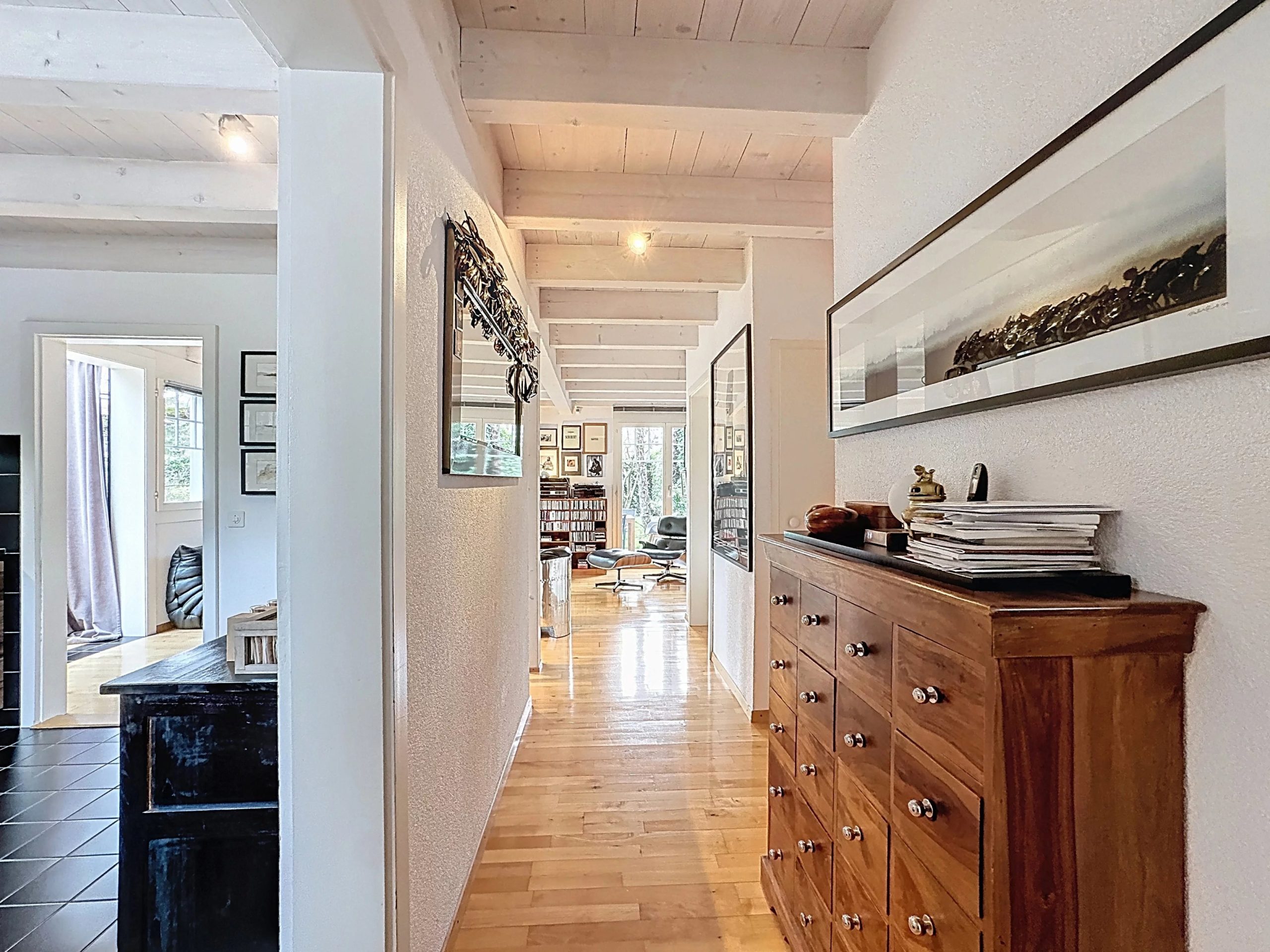 Le rez accueille une cuisine ouverte sur un séjour en enfilade, prolongé par une magnifique véranda baignée de lumière, véritable pièce de vie supplémentaire ouverte sur un splendide jardin avec piscine.