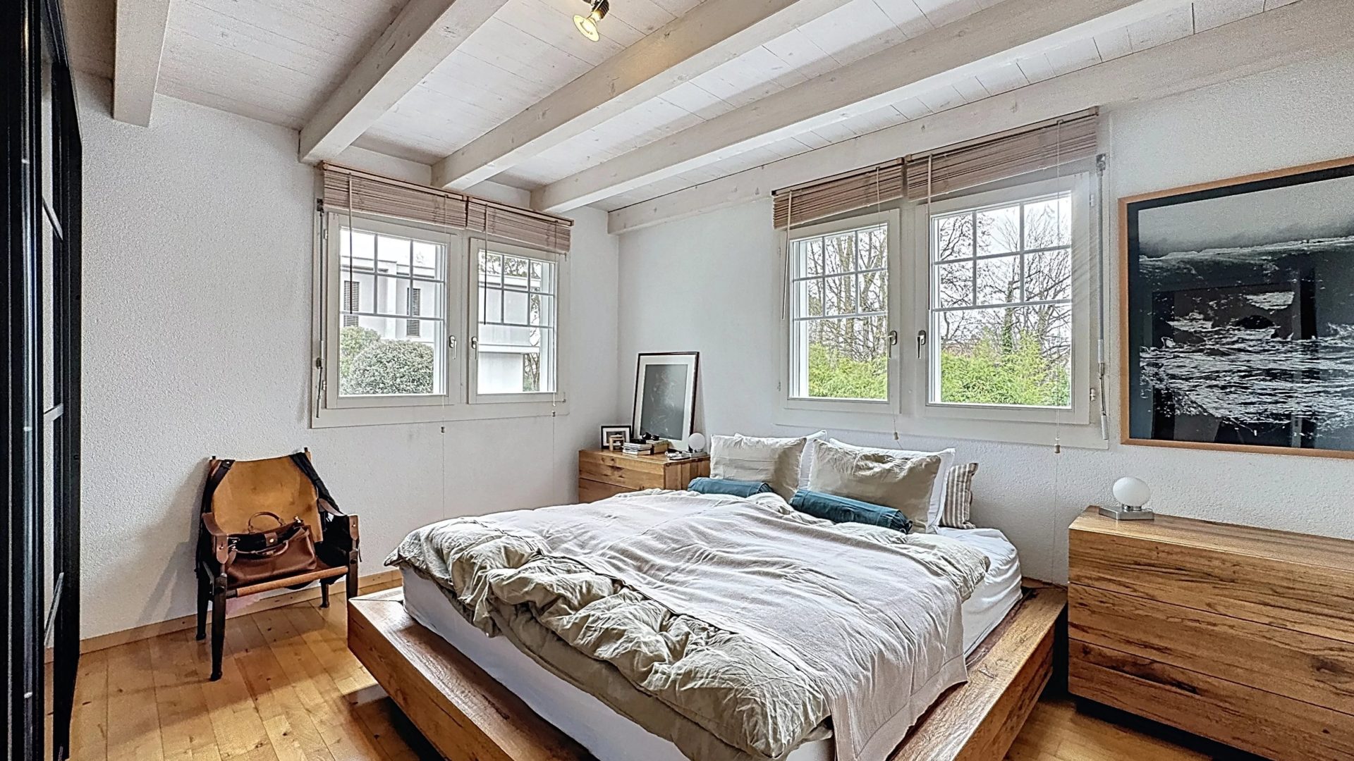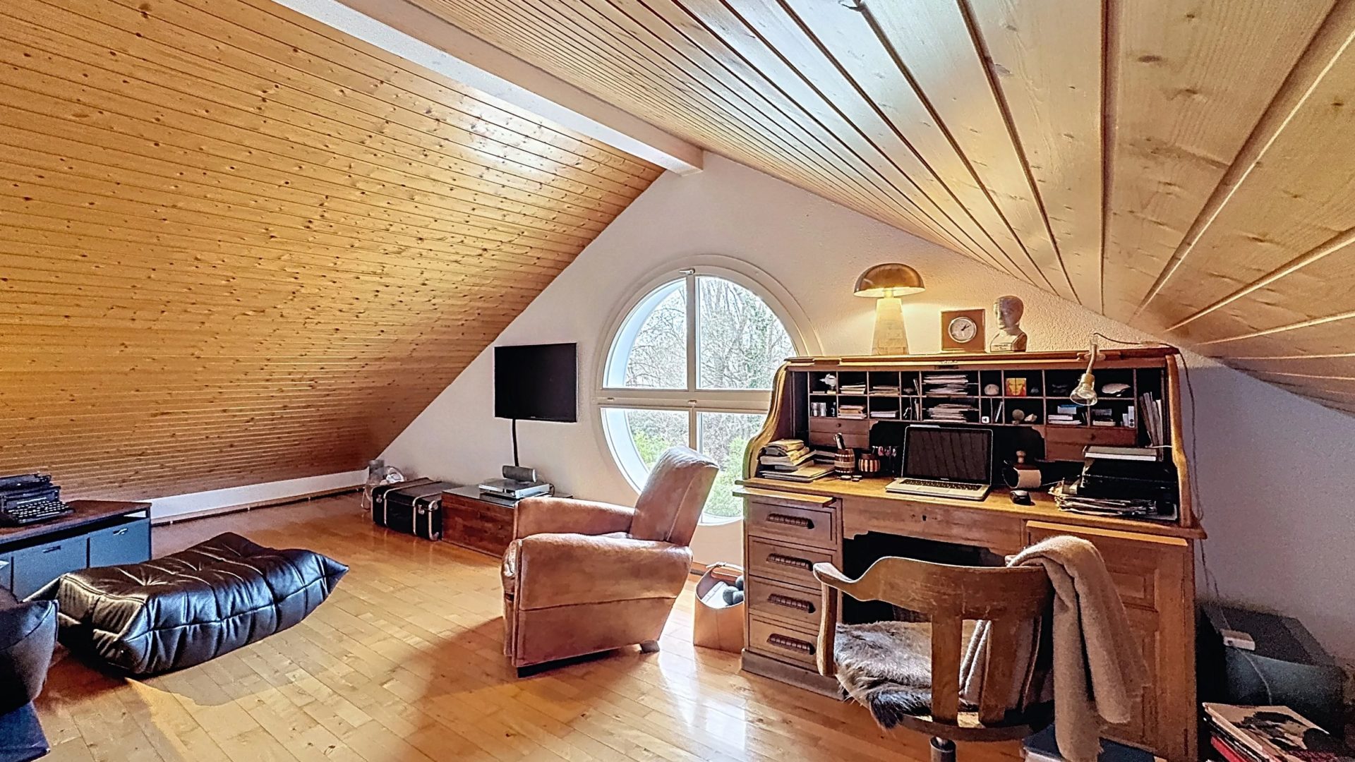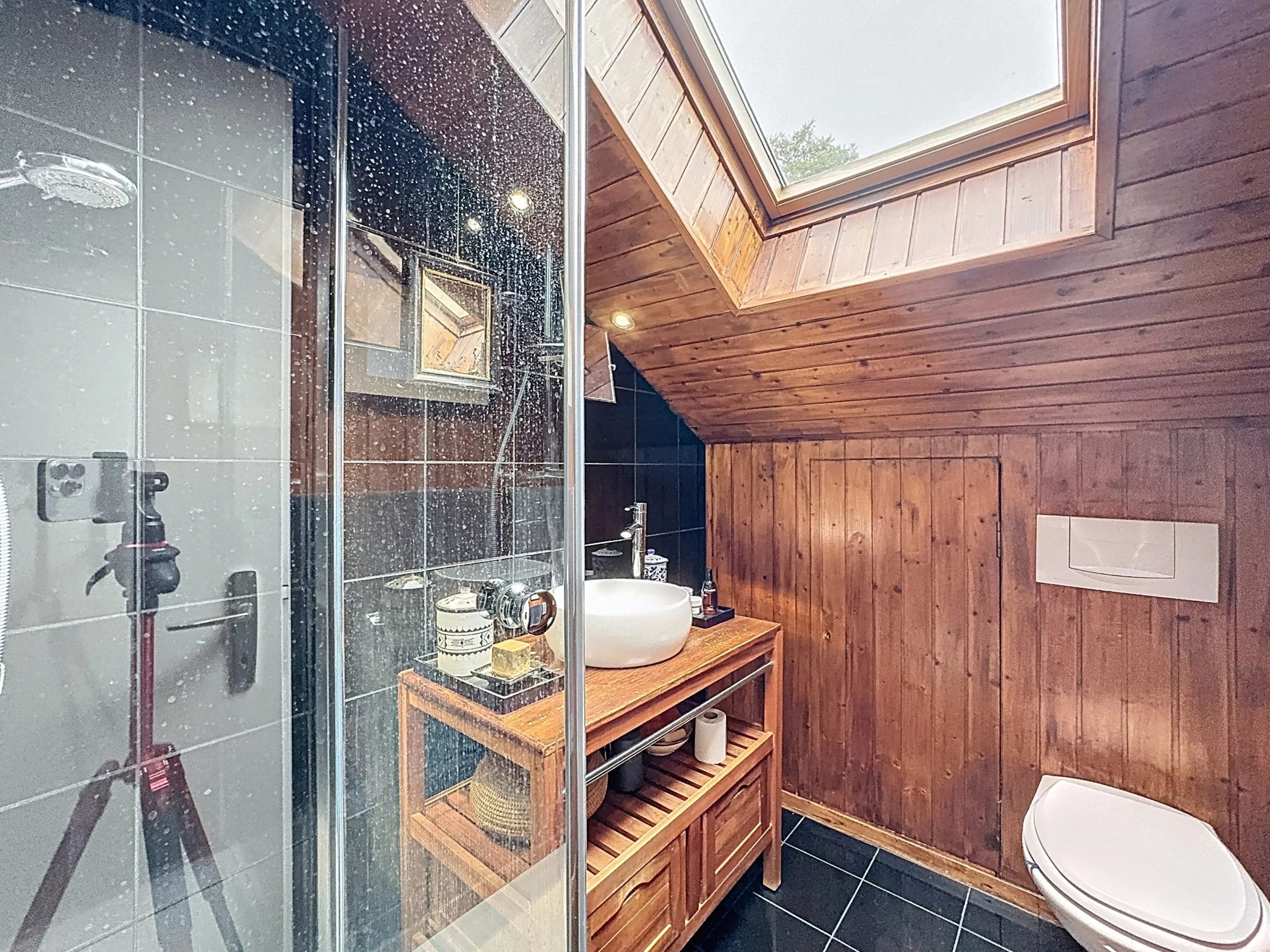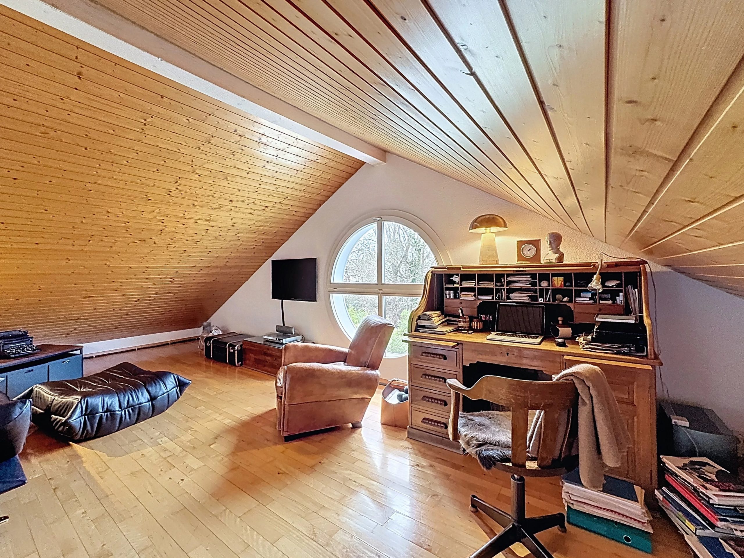 Le dernier niveau offre une spacieuse chambre avec salle de douche complète, idéale en suite parentale, un espace invités ou un bureau indépendant.