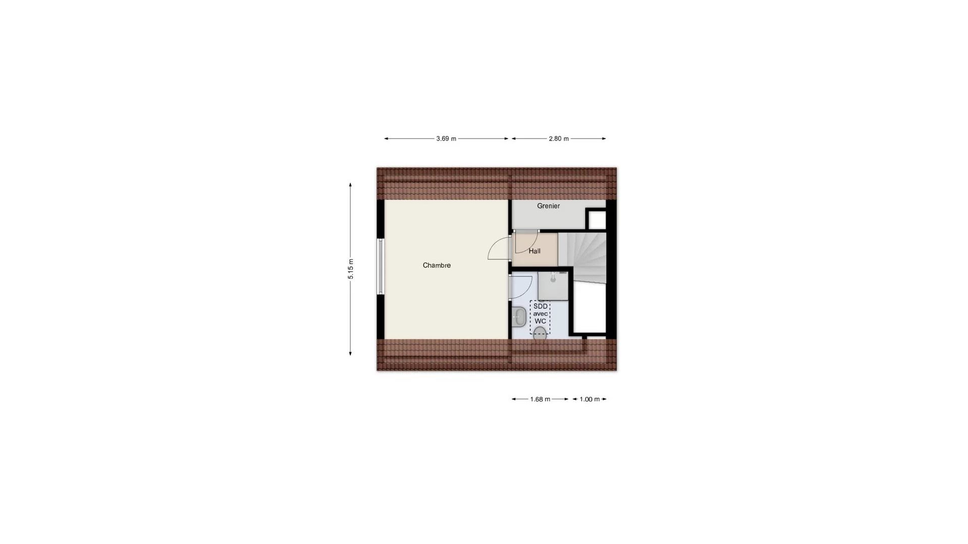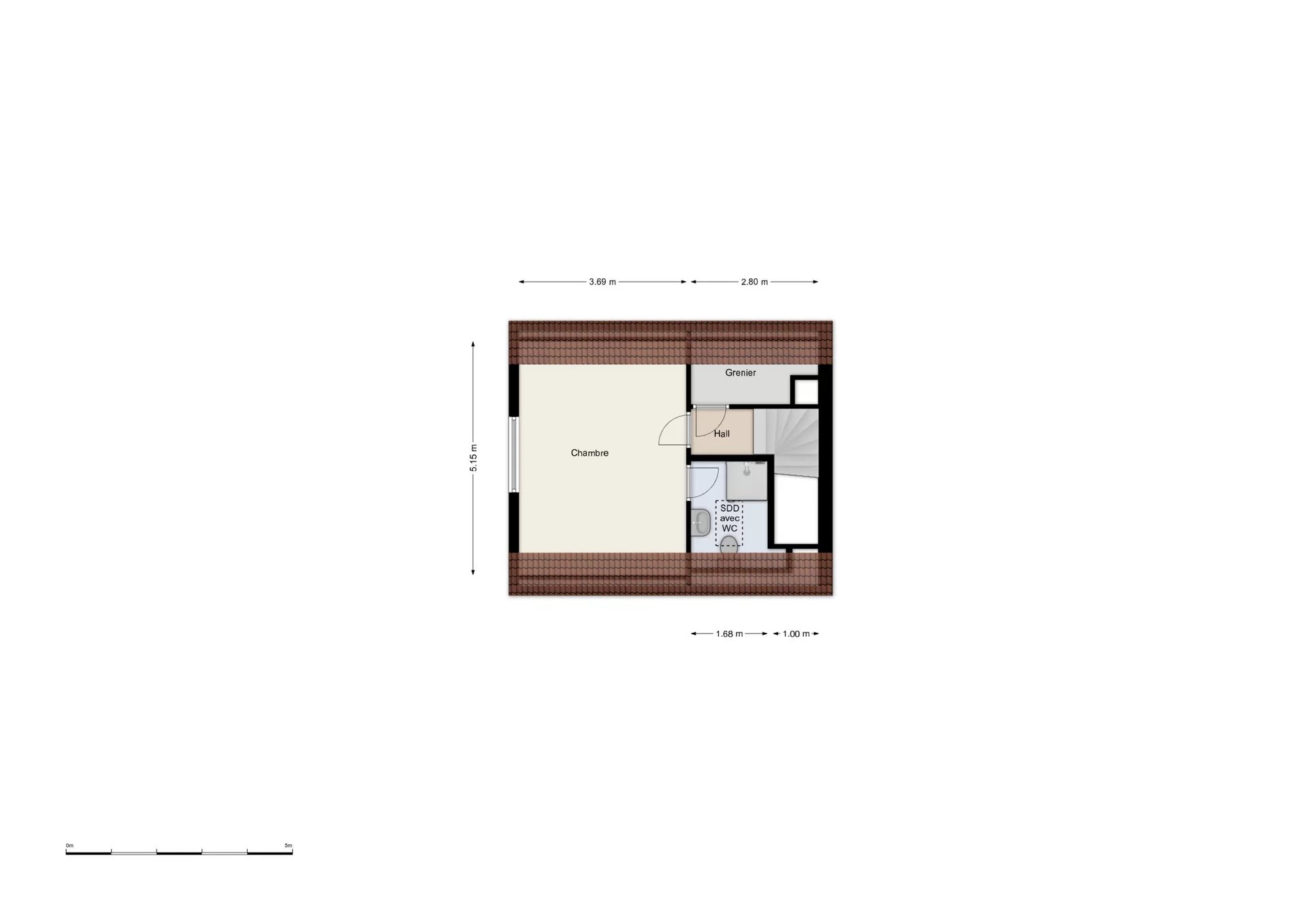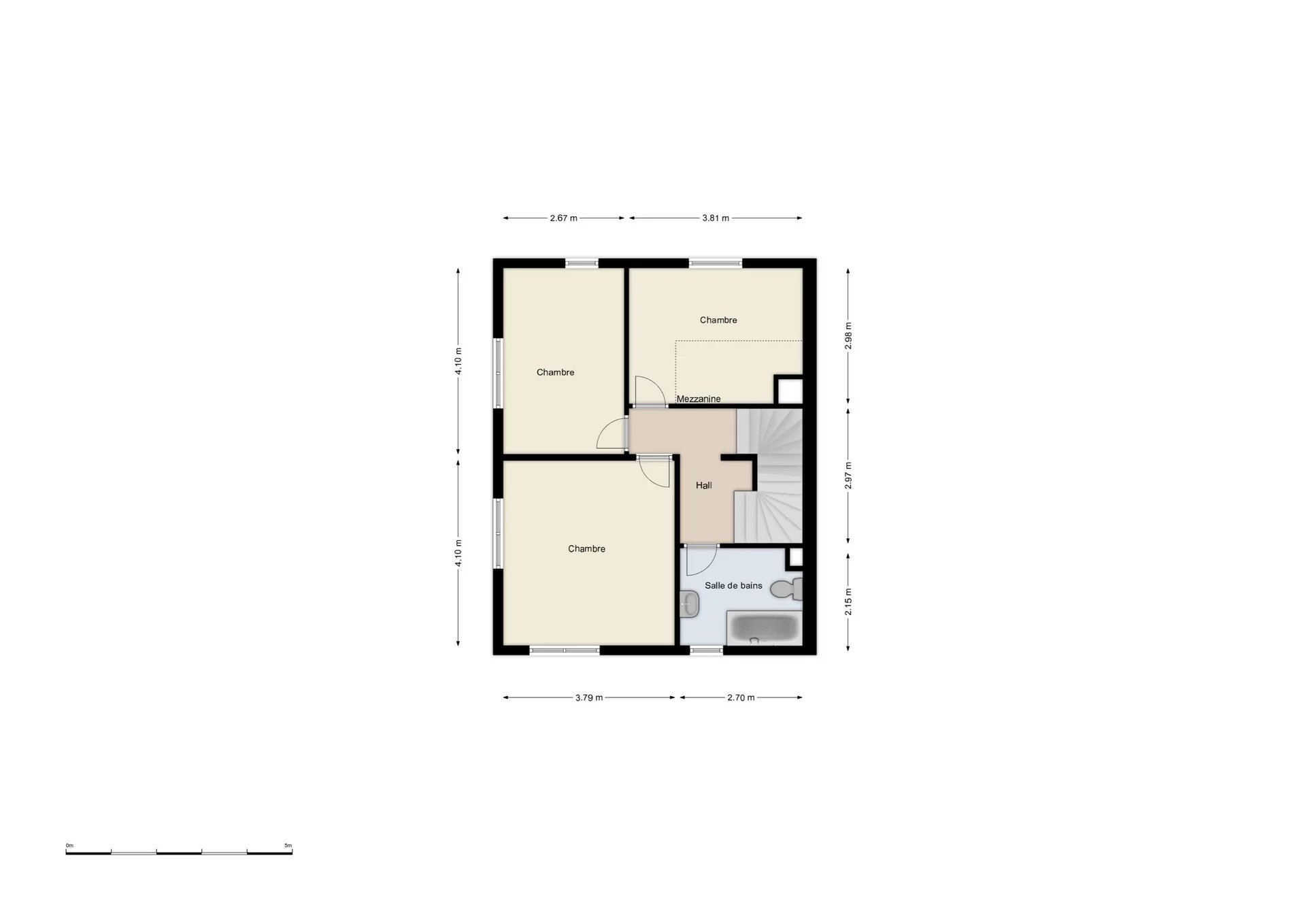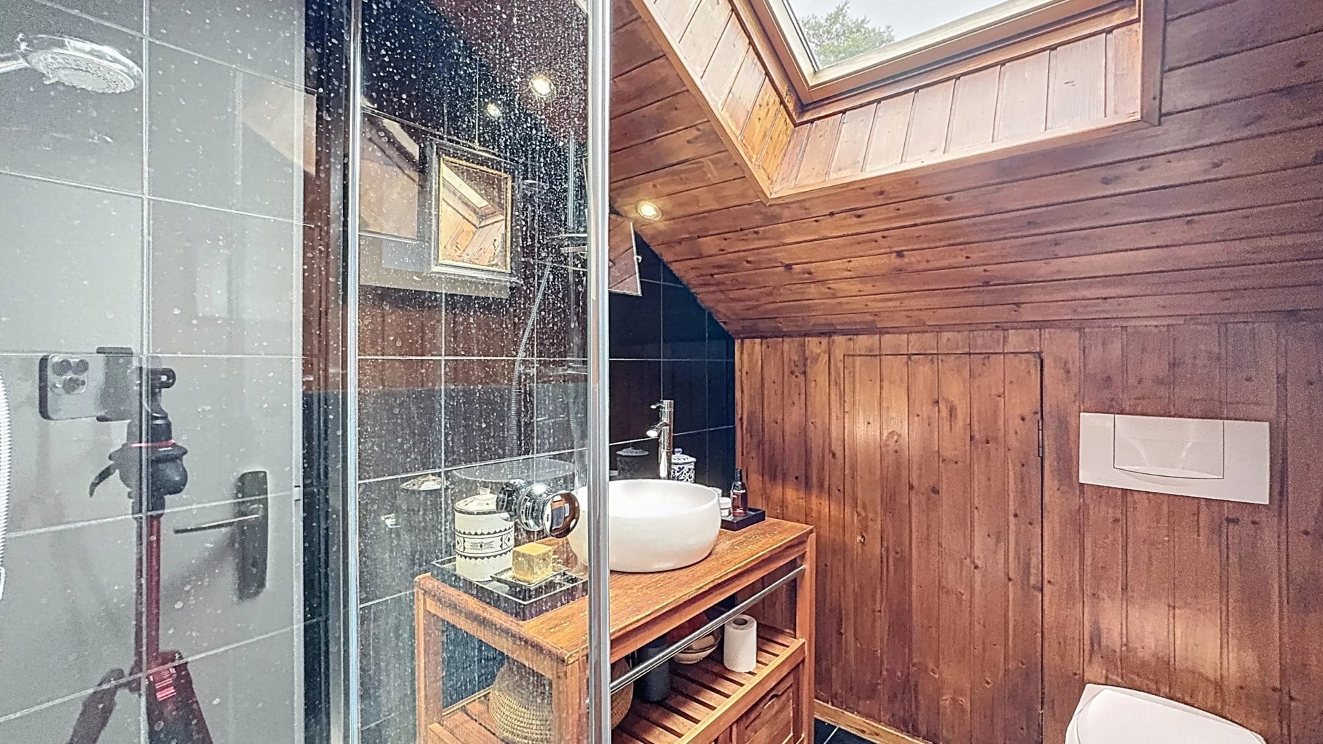 Le dernier niveau offre une spacieuse chambre avec salle de douche complète, idéale en suite parentale, un espace invités ou un bureau indépendant.