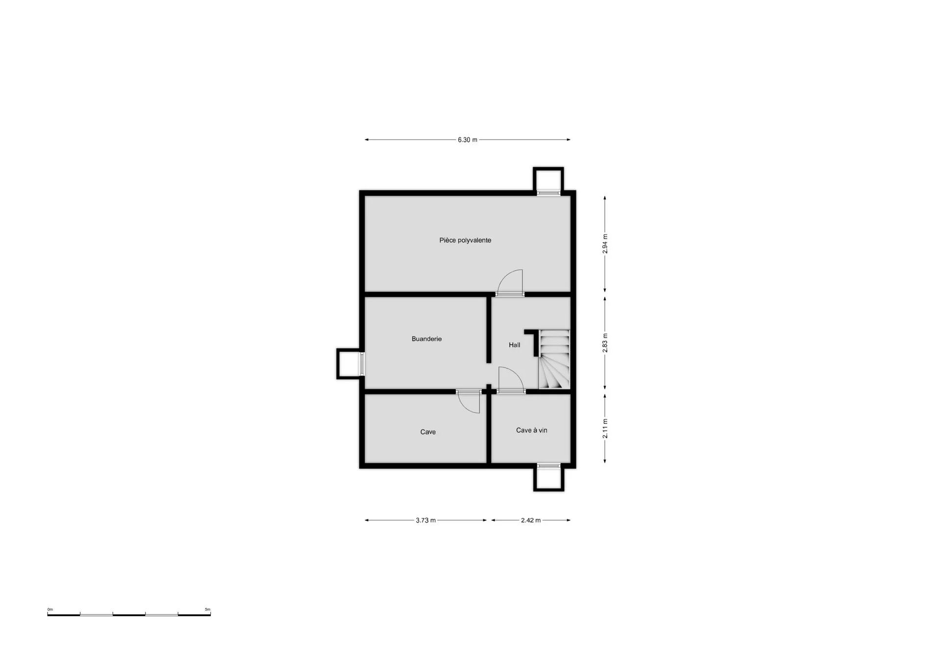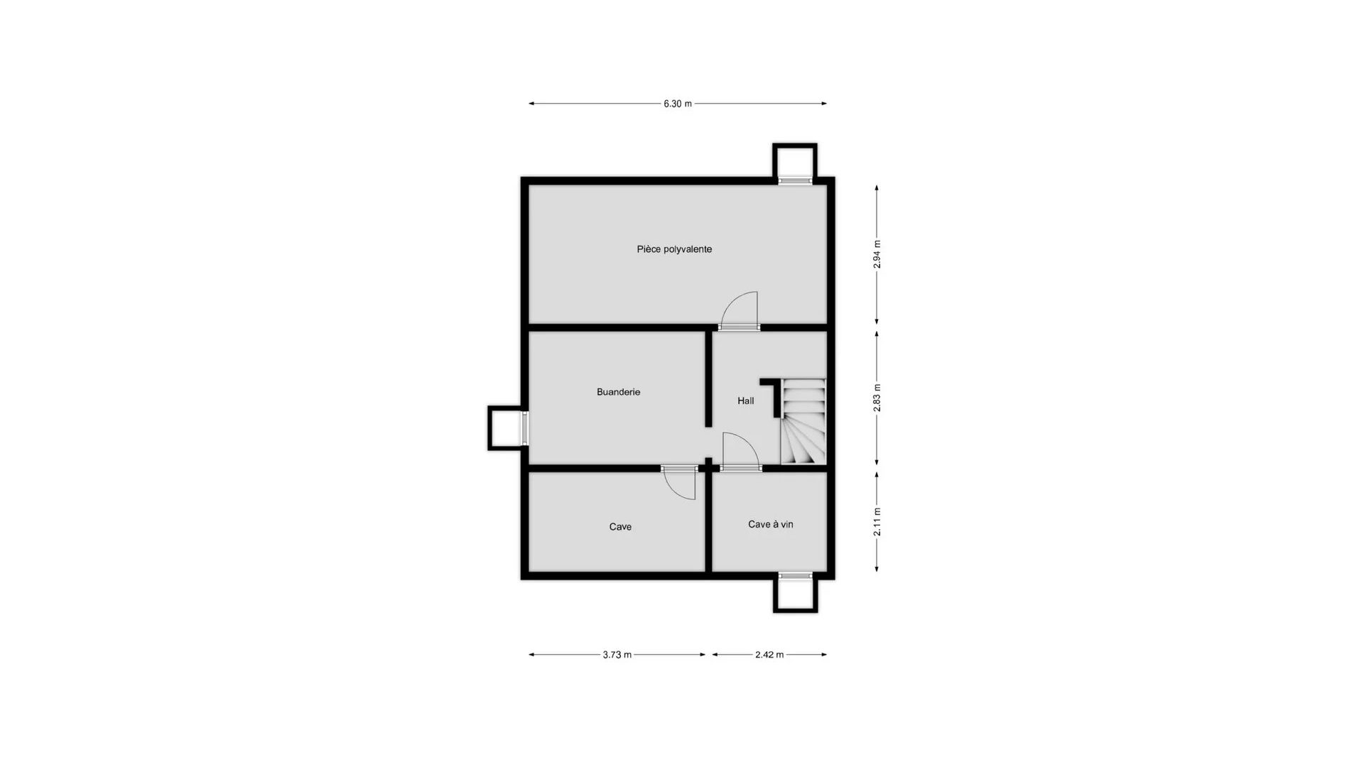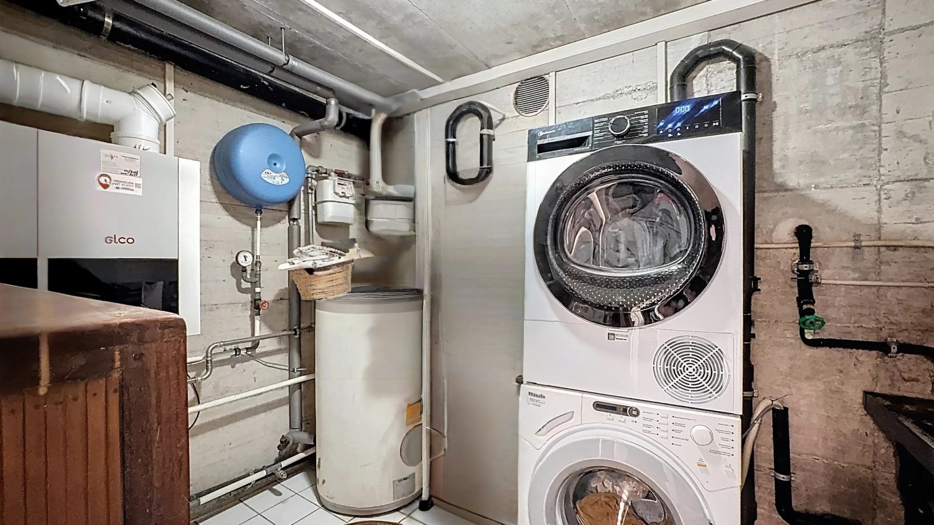 Le sous-sol propose deux locaux techniques, une buanderie et une grande pièce polyvalente.