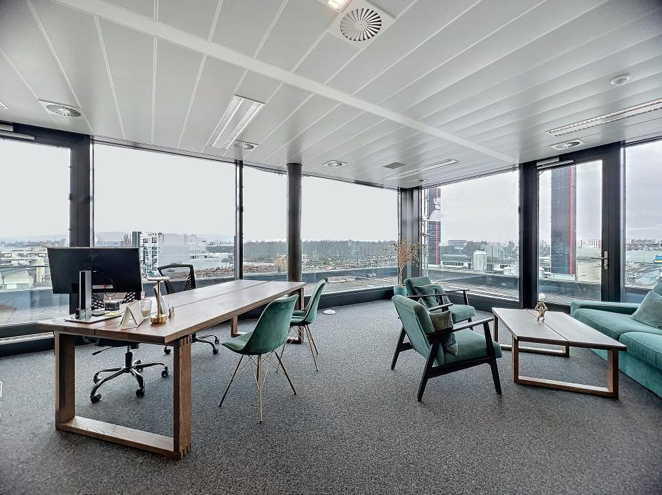 Situé au 5ème étage et offrant une vue splendide dégagée, nous vous proposons un grand espace de 570m2, subdivisible avec 2 places de parking. Découvrez un grand open space, des bureaux spacieux et extrêmement lumineux. L’espace est agencé de la manière suivante : une entrée, un grand open space, et 13 bureaux séparés par des cloisons en verre spacieux et lumineux, allant de 11 m² à 47 m². Un bel espace cuisine et salle à manger ainsi qu’ un local pouvant être utilisé comme espace d’archivage ou autre.
