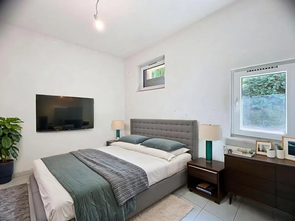 Spacieux hall d’entrée avec rangements intégrés, cuisine moderne entièrement équipée ouverte sur le séjour et la salle à manger. La partie nuit se compose de deux chambres et d’une salle de bains avec toilettes. À l’extérieur, un agréable jardin avec barbecue et abri de jardin vient compléter ce bien.