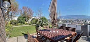 De conception résolument moderne, cet exceptionnel attique offre des vues panoramiques uniques sur toute la région et de vastes et lumineux espaces de vie : double séjour avec cheminée André Bucher, cuisine intégrée, salle à manger somptueuse, mobilier luxueux mais sobre, tout a été conçu pour un confort optimal.
